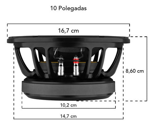 Características técnicas do Alto Falante Woofer 7 Driver MH 420 rms 10 Polegadas :