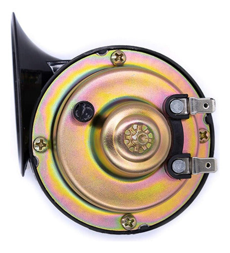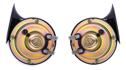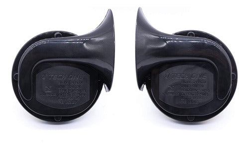 Buzina Caracol Universal Tech One, ideal para todos os tipos de veículos (12V). Este conjunto inclui duas buzinas de alta performance: uma com som grave e outra com som agudo, garantindo uma potência sonora de 105-115dB. Com construção robusta e suporte incluído, estas buzinas são duráveis, confiáveis e de fácil instalação.