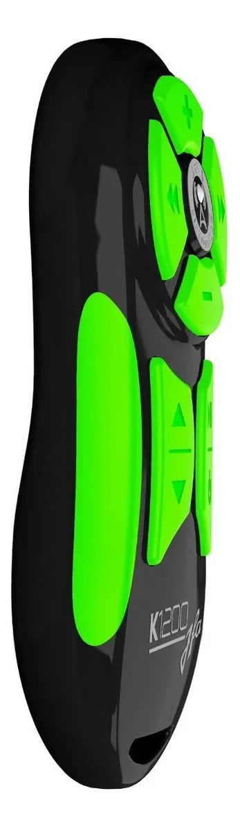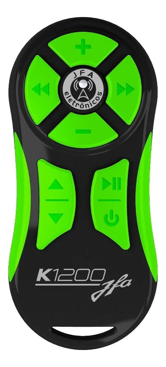 Controle Remoto K1200 Plus da JFA com alcance de longa distância até 1200 metros em área aberta. - Modo Memória: possui configurações pré-cadastradas para os principais aparelhos de som e vídeo do mercado. - Modo Aprender: permite copiar e codificar funções a partir do controle IR original. Características: - Marca: JFA - Referência: 7898554808141 Especificações Técnicas: - Alcance de até 1.200 metros em área aberta; - Teclas de silicone com alta resistência, gravadas em baixo relevo; - Design e ergonomia que facilitam o uso; - Cor: Caixa Preta com as Teclas Verdes - Central slim com receptor ultrassensível; - Bateria controle: 12V - Alimentação transmissor: 12V - Bateria A23 - Alimentação receptor: 9Vdc a 16Vdc - Frequência de operação: 433,92 MHz - Modulação: ASK - Modelo da bateria: Lithium Battery CR2032 3V - Resistência à água: Não - Modo aprender: Sim - Modo memória: Sim - Alcance em metros: 1200 metros - Ergonomia: Sim - Teclado: Silicone Conteúdo da embalagem: - 01x Controle Remoto K1200 Plus Preto/Verde JFA