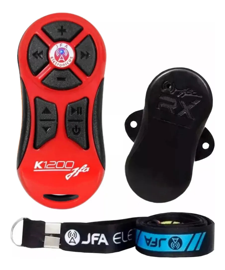 CONTROLE COMPLETO JFA K1200 VERFMELHO Controle Completo, só instalar Especificação Técnica: • Até 1200 Metros de Alcance em Área Aberta • Compatível com Qualquer Player que Tenha Controle Remoto • Modo Aprender: Aprende as Funções Básicas do Controle Original • Modo Memória: 70 Aparelhos Pré-Configurados para Uso • Teclas em Silicone com Gravação a Laser • Carcaça em ABS Resistente • Frequência de Operação: 433,92MHz • Potência Irradiada: 0,808mW • Modulação: ASK • LED na Cor Azul • Alimentação Controle: Bateria 12V Modelo A23 • Alimentação Receptor: 12V Conteúdo da Embalagem: • 1 Controle • 1 Central Receptora • 1 Cordão • Manual