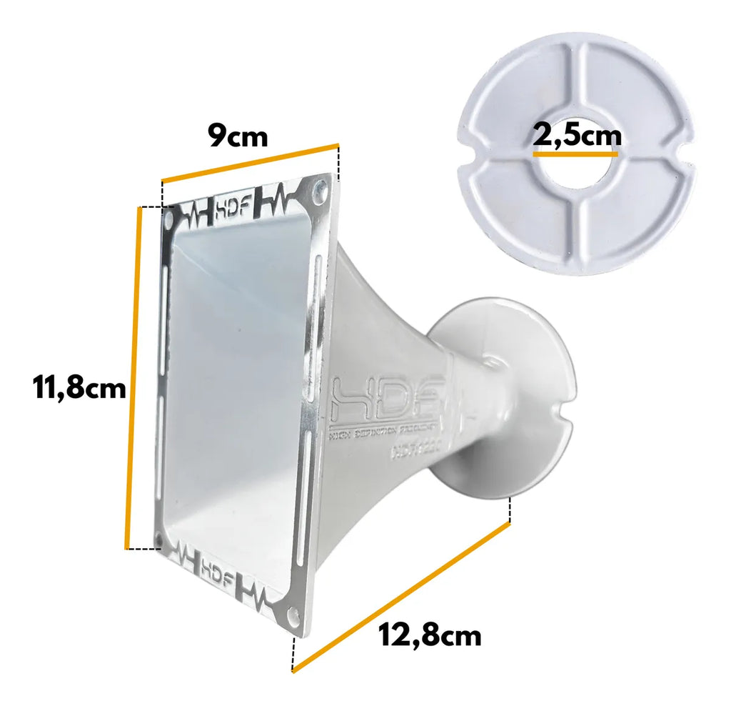 A Corneta Guia de Onda HDF 1220 é o componente ideal para quem busca otimizar a dispersão sonora de drivers de 1 polegada, garantindo alta performance e fidelidade em sistemas de som profissional e automotivo.