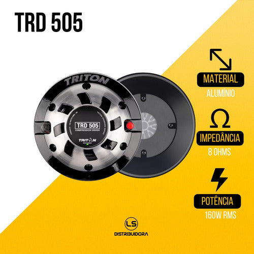 O Driver Triton TRD 505 é perfeito para quem tem um sistema de som automotivo trio e quer um sistema de cornetas com médios altos (voz) com extrema qualidade e potência sonora, um ótimo custo x benefício e todo o renome da Triton