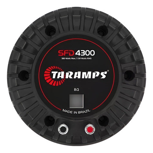 SFD-4300, um Driver de Compressão, com membrana em resina fenólica, desenvolvido cuidadosamente para ser um grande aliado na inteligibilidade do seu sistema de som, proporcionando timbres limpos e muito bem definidos dos médios aos médios agudos. É construído estrategicamente associando design, e resistência na sua câmara externa, com resultados surpreendentes em qualquer uma das suas aplicações. Suportando alta potência e deslocamento, dentro da sua especificação mecânica. Eficiência, Design, Robustez e Performance são sinônimos deste novo produto.