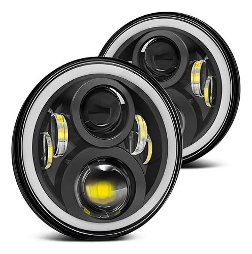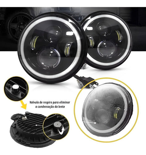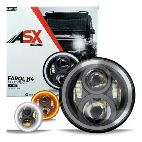Farol Angel Eye Redondo 7 Polegadas ASX - 45W 5.400 Lumens 6000k Bivolt 12-24v função Drl 6000k função seta 3000k
