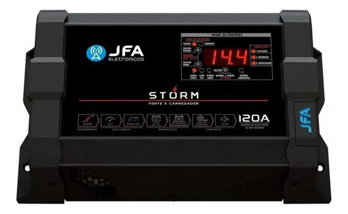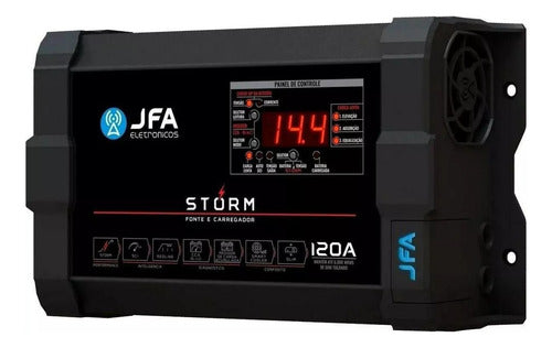 A Fonte e Carregador Storm 120A é mais que uma fonte. Ela é a revolução de tudo o que a JFA já produziu. Equipada com a mais alta tecnologia, compacta e com funções exclusivas, a Fonte Storm é a melhor escolha para carregar, alimentar e também monitorar o funcionamento de baterias automotivas.