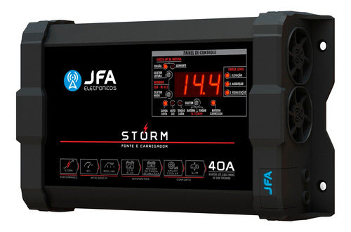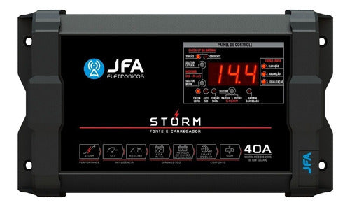 Fonte Automotiva JFA STORM 40A 600W Bivolt com Voltímetro, Amperímetro e medidor de CCA, tecnologia exclusiva no Brasil.