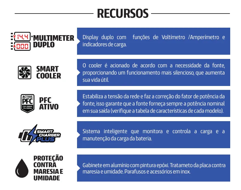 Corrente de Saída: 60A @ 12,5Vcc (±5%)