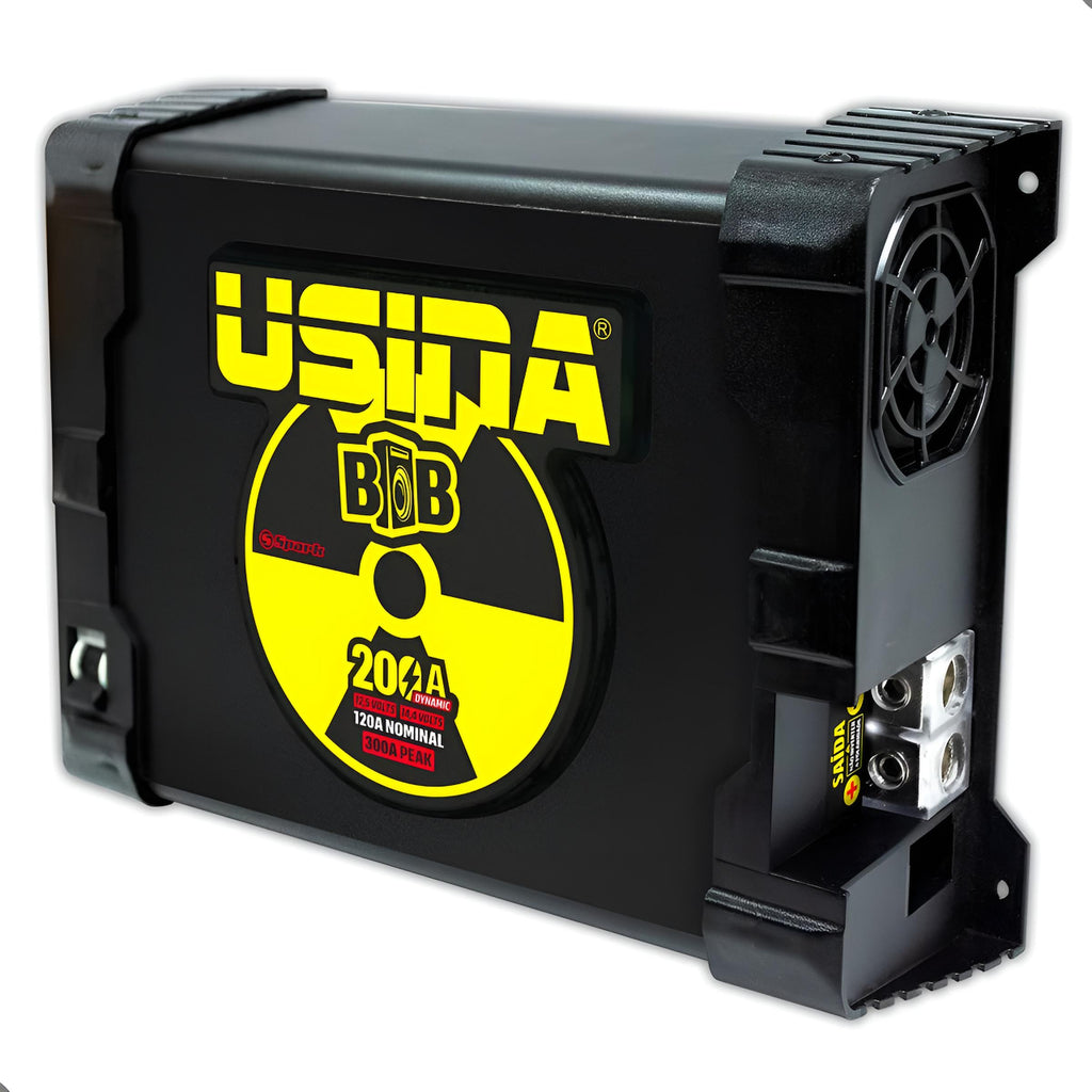 Direcionada para uso em Bobs sem precisar de bateria, A Usina BOB foi desenvolvida especialmente para alimentação de caixas BOB, sabemos que em um sistema de som o consumo musical dos amplificadores é bem abaixo do consumo nominal devido ao programa musical, este apresenta um consumo de potência dinâmico acompanhando os picos de grave de música, sabendo disso, desenvolvemos um exclusivo controle de corrente dinâmico, este controla a corrente de saída da fonte librando até 70% a mais que a corrente nominal em sua saída, assim temos um produto mais compacto e com um excelente custo benefício para alimentar a sua caixa BOB.
