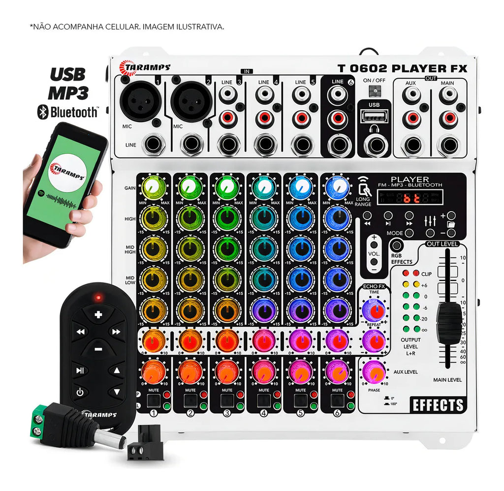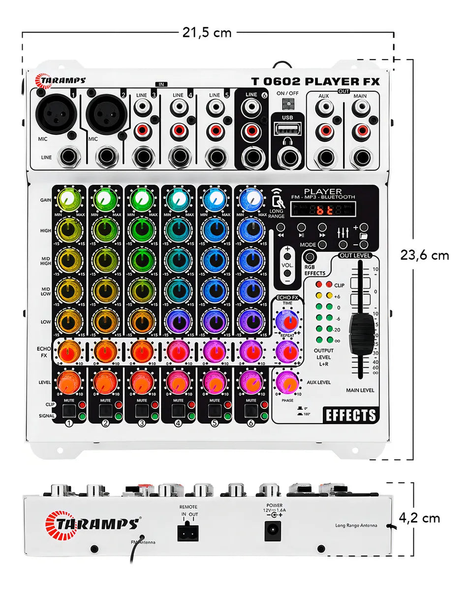 ✔️ 1 Mesa de Som T-0602 Player FX Multicolor