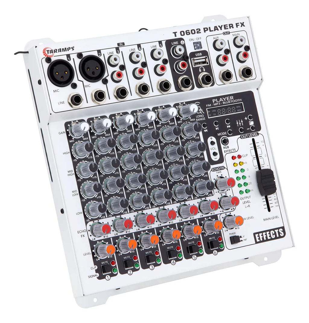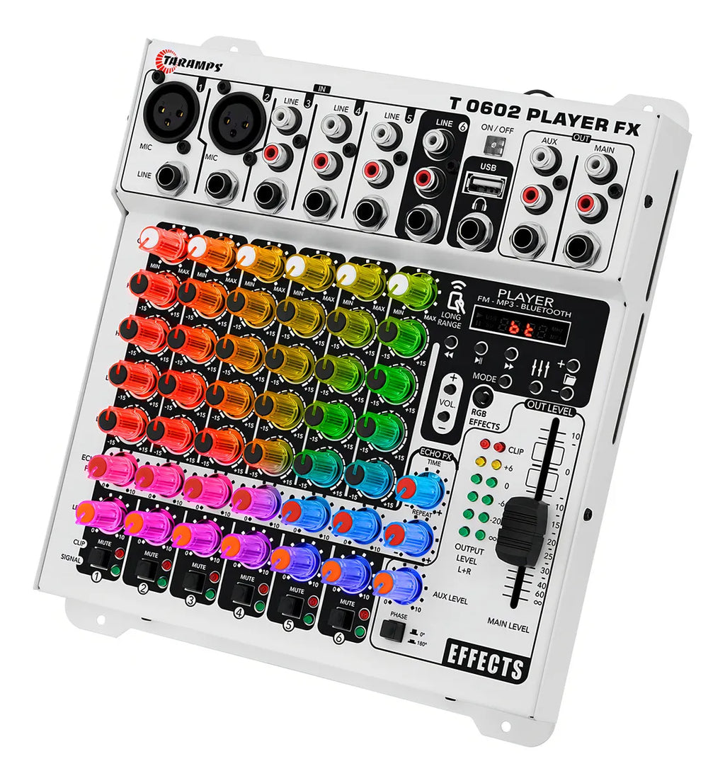 Mesa de Som T-0602 Player FX Multicolor – Som Profissional com Estilo e Tecnologia
