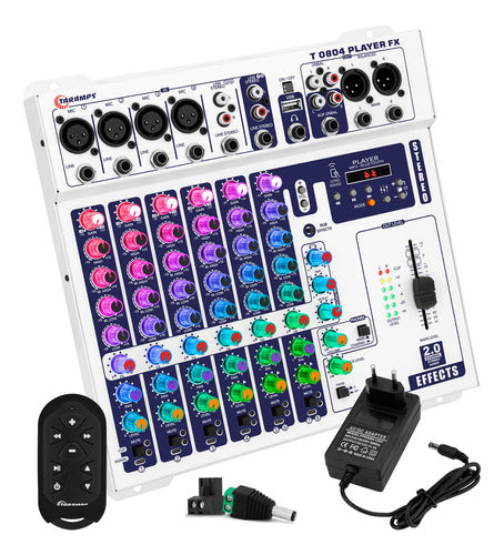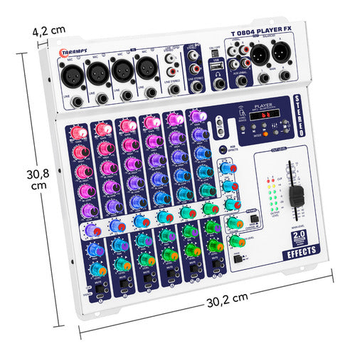 Com a Taramps T 0804 Player FX Multicolor, você tem em mãos uma mesa de som que une qualidade profissional e design moderno, ideal para DJs, músicos e produtores que buscam performance sem renunciar à estética.