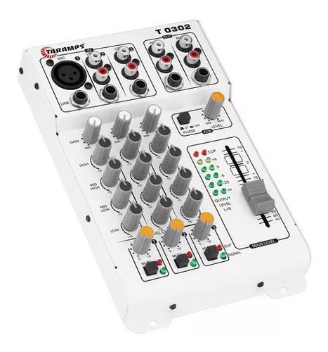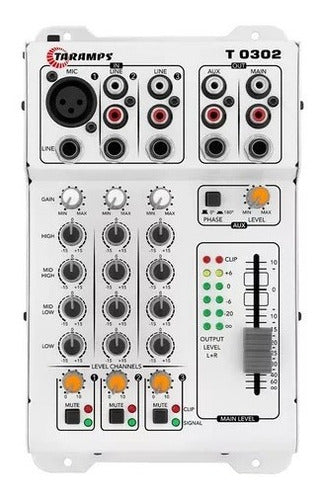 Com a mesa de som T 0302 da Taramps, você pode controlar e mixar o seu sistema de som com tranquilidade e simplicidade. Os três canais de entrada, com 8 conexões, permitem diversas possibilidades de mixagem, incluindo microfones, players, instrumentos musicais como teclado e violão, entre outros.