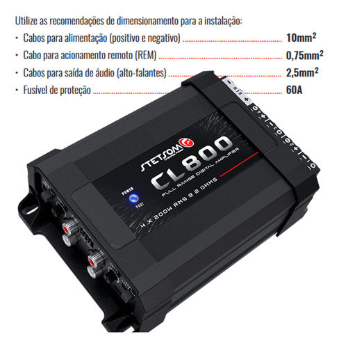Potência nominal @ 14,4V: STEREO: 4 x 200W RMS @ 2 OHMS