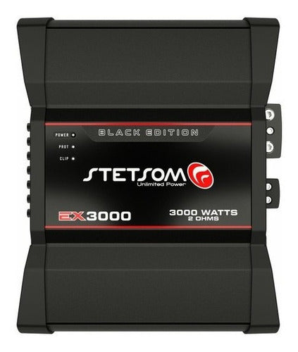 O Amplificador Stetsom Ex 3000 Black Edition possui tecnologia Digital proporcionando baixo consumo de bateria em seu sistema de som automotivo. Tem potência de 3000w rms e até 3700w rms de potência máxima à 14,4v (com o carro ligado ou com o uso de fonte/carregador).