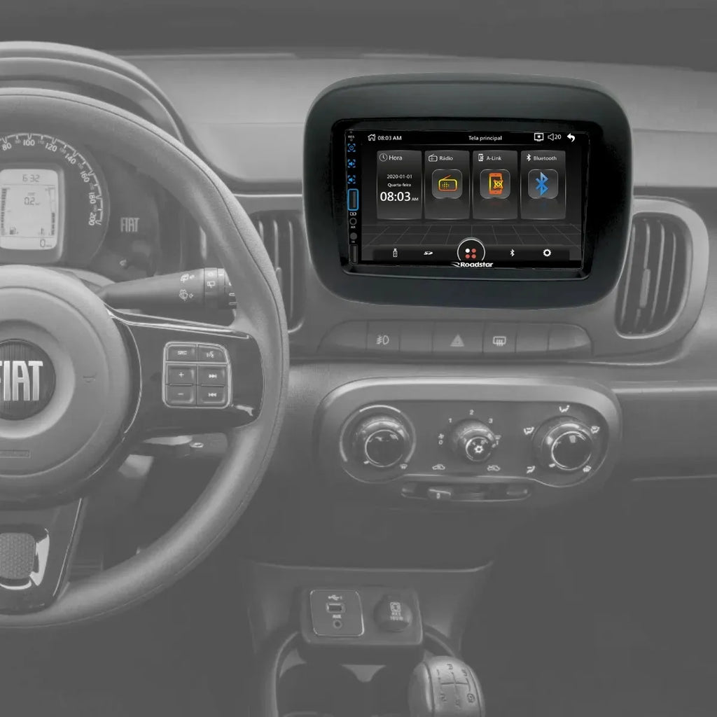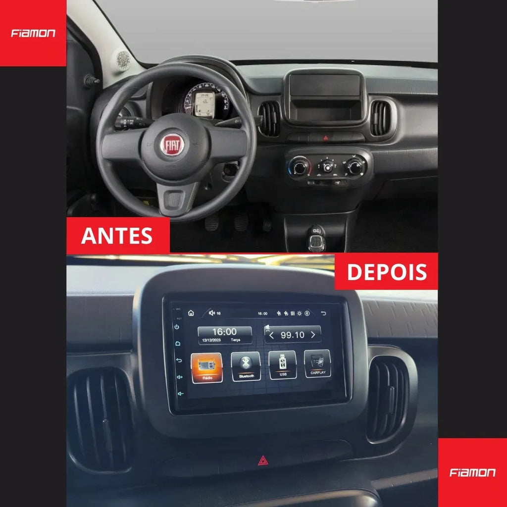A Moldura 2 DIN Fiamon para Fiat Mobi é o acessório ideal para quem deseja instalar rádio, DVD Player ou Central Multimídia mantendo o visual original do painel e garantindo um acabamento impecável.