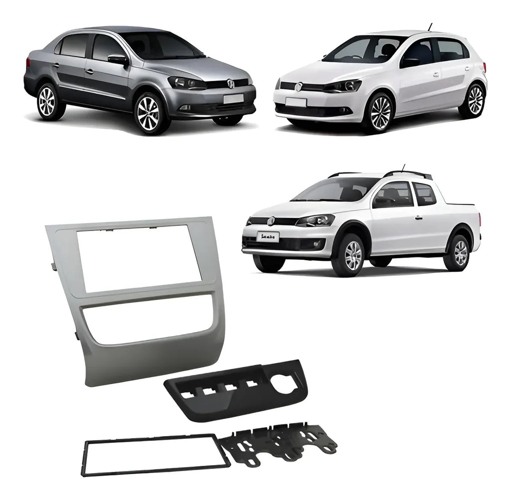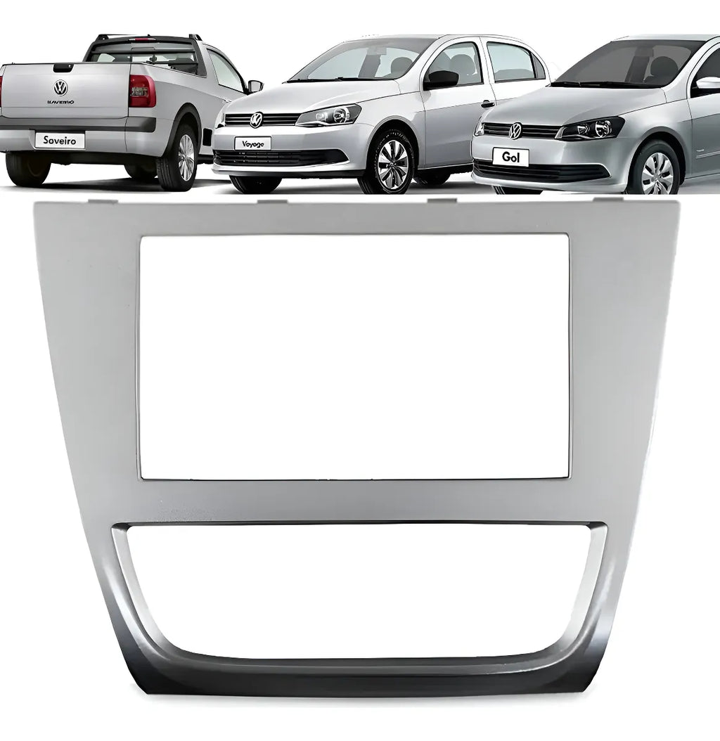 Moldura de Painel 2 DIN Prata para Volkswagen Gol / Voyage / Saveiro Geração 6