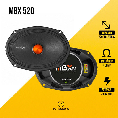 Par de Alto Falantes Triton 6x9 MBX520 260W Médio Grave