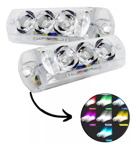 Faróis com leds RGB e lentes de alto desempenho, possibilita obter 7 cores diferentes no mesmo farol: Amarelo, Azul, Branco, Ciano, Rosa, Verde e Vermelho.