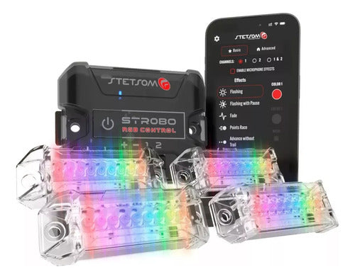 O Strobo Rgb Stetsom é um sistema de iluminação LED projetado para elevar a experiência do seu som automotivo. Com seus módulos de LED, oferece efeitos de iluminação personalizados que podem ser facilmente controlados através de um aplicativo para smartphone Android ou iOS, via conexão Bluetooth. Seus efeitos de iluminação oferecem ajustes personalizados para criar uma atmosfera única em seu veículo.