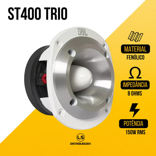 O super tweeter ST 400 AUTO TRIO apresenta elevada eficiência e baixa distorção na reprodução das altas frequências. Pode ser utilizado em sistemas de PA, mini trios automotivos e em sistemas de reforço de som. A base e o difusor são construídos em alumínio contribuindo assim para uma melhor dissipação de calor da bobina móvel, com um acabamento de usinagem diamantada ferramenta de diamante e envernizados. O ângulo de dispersão de sua corneta de 40x40 (HxV) é adequada para atingir longas distâncias. Seu diafragma fenólico reproduz os agudos com um timbre agradável. A bobina é construída em forma de kapton e enrolada com fio do tipo CCAW (copper clad aluminium wire) resistente as altas temperaturas.Conjunto magnético com anel de alumínio garantindo uma alta definição e eficiência em toda sua faixa de reprodução. Conectores com engates rápidos. Como todos os super tweeters da selenium, possui um versátil sistema de troca do reparo (modelo RPST400), de grande utilidade quando uma eventual manutenção se fizer necessária, proporcionando economia e rapidez para o profissional.