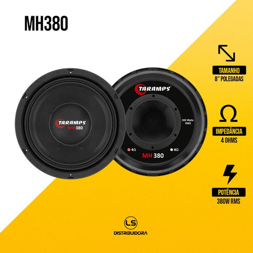 O MH 380 é um alto-falante de 8 polegadas feito para reproduzir com muita fidelidade e naturalidade faixas de frequência entre 70 e 7KHz. Devido aos componentes cuidadosamente selecionados, ele suporta até 760 Watts em programa musical, proporcionando timbres limpos e alta definição sonora desde os médios graves até os médios agudos. Além disso, está disponível nas versões de 4 ou 8 Ohms, atendendo aos mais variados sistemas de som automotivo como: trio elétricos, caixas frontais, caixas cornetadas, sistemas quatro vias, paredões, caixas bob entre outros. Também é super indicado para sistemas de uso profissional. Conheça a qualidade sonora do Grupo Taramps.